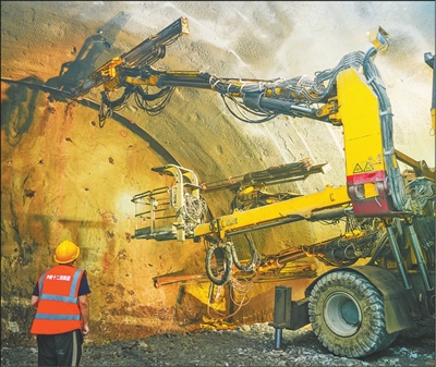 新渝万高铁长岭岗隧道应用三臂凿岩台车等机械化设备进行施工。 以上图片均为任达禹摄(人民视觉)