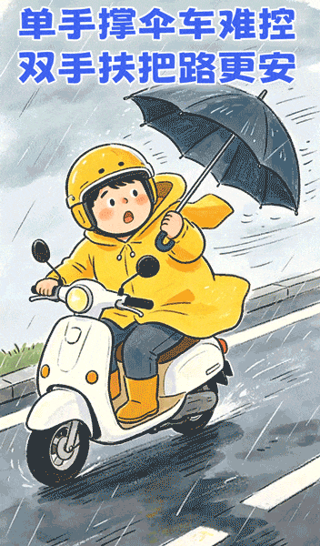 单手扶车把(撑伞、接电话)会降低车身操控性,雨天路面湿滑,轻微晃动就可能失控,需双手扶把。