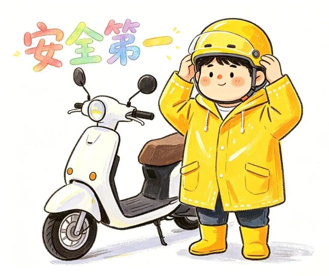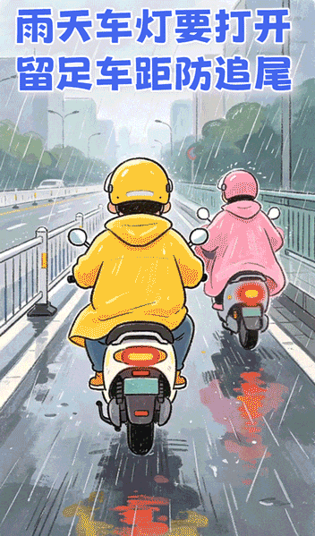 雨天能见度低,电动自行车开启车灯(近光),可提升自身辨识度,让机动车、行人及时发现,降低事故率。雨天机动车刹车距离延长,电动自行车需与前车(尤其是机动车)保持安全距离,避免追尾。